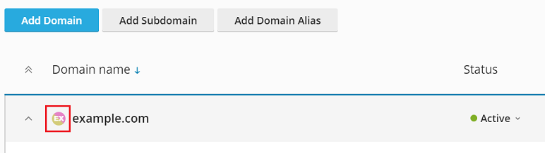 A domain favicon is a small image Plesk shows next to a domain name if you use the Dynamic List view. You can see favicons on the Websites & Domains screen.